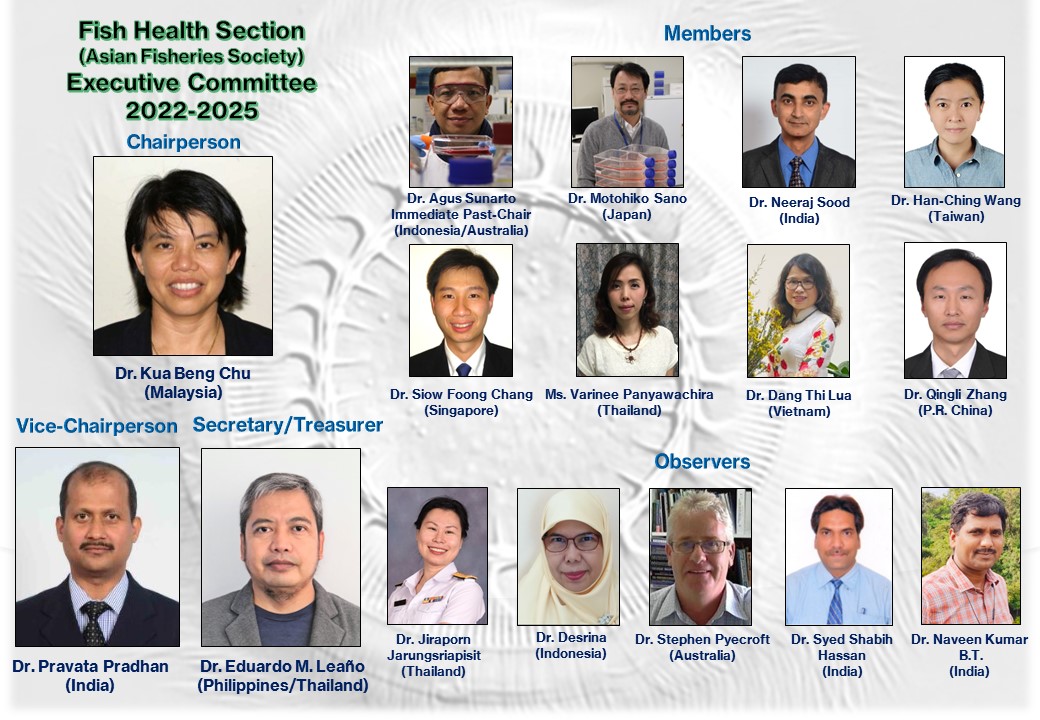 The FHS has been fortunate in having dedicated members who have been willing to serve as members of its EXCOMM. The EXCOMM serves for three years, and is elected at the Triennial General Meeting held in conjunction with the Symposium on Diseases in Asian Aquaculture. The composition of the EXCOMM has been as follows:
